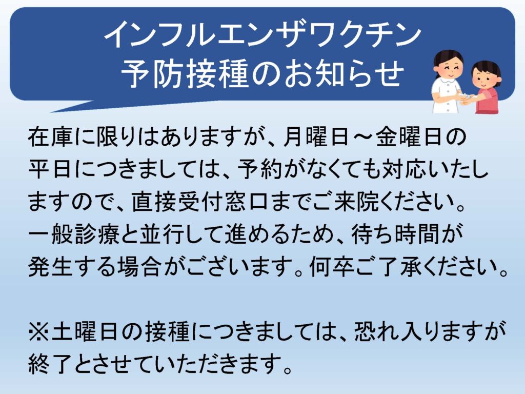 インフルエンザワクチン予防接種のお知らせ